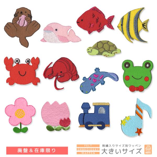 刺繍ワッペン 大きいサイズ うさぎ ひつじ ねこ いぬ 刺繍入り