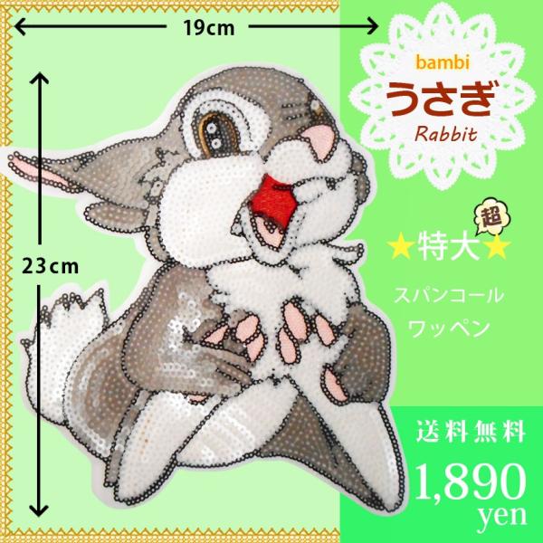 送料無料 特大ワッペン うさぎ とんすけ 子鹿のバンビ スパンコール