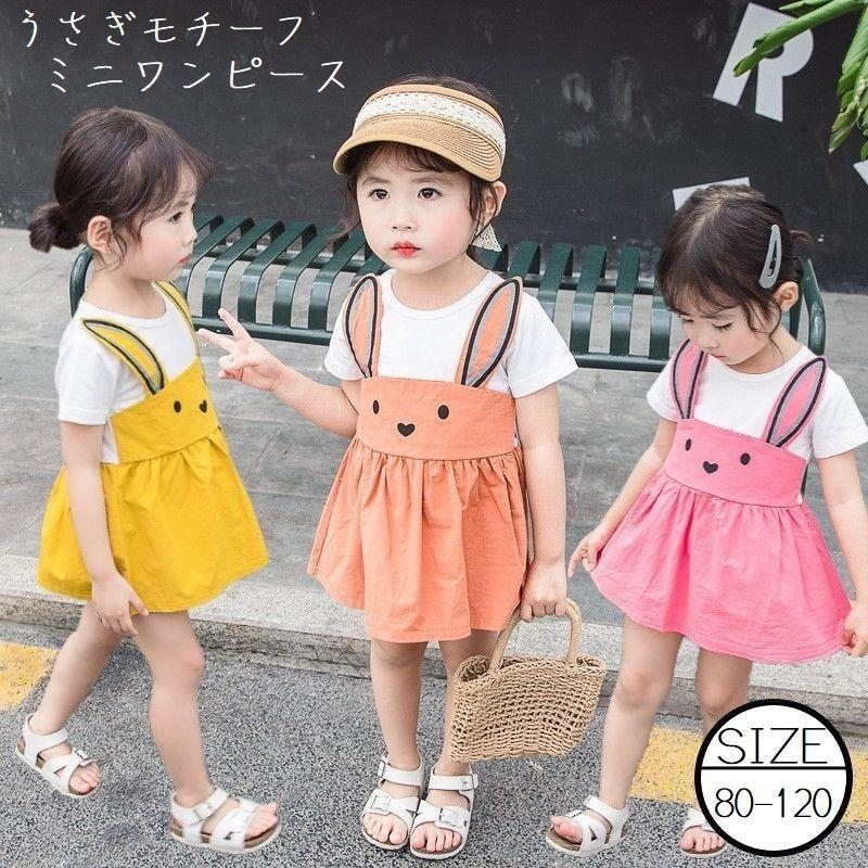 半袖ワンピース キッズワンピース うさぎモチーフ 子供服 キッズ服