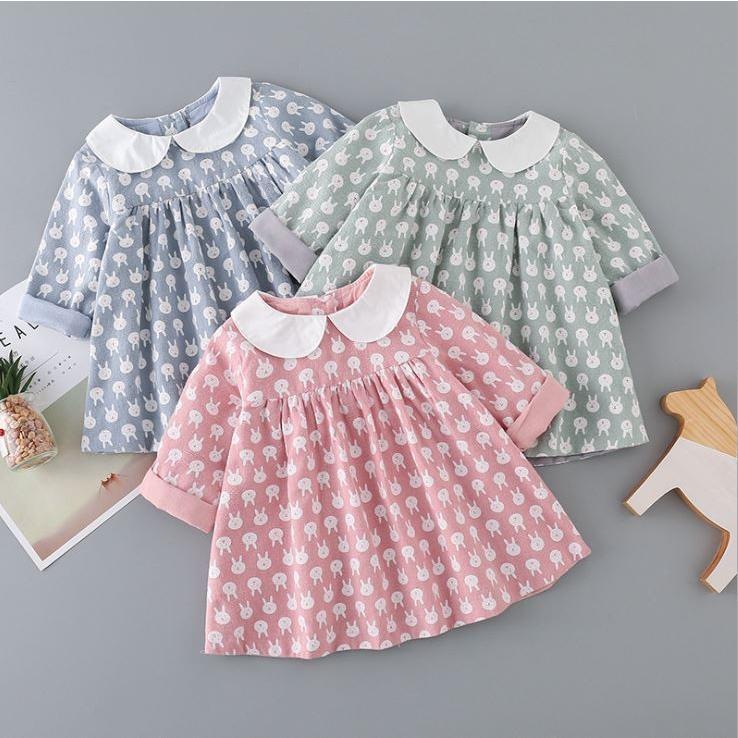 ベビー服 ワンピース 丸襟 うさぎ柄 キッズ服 長袖 女の子 春秋 結婚式