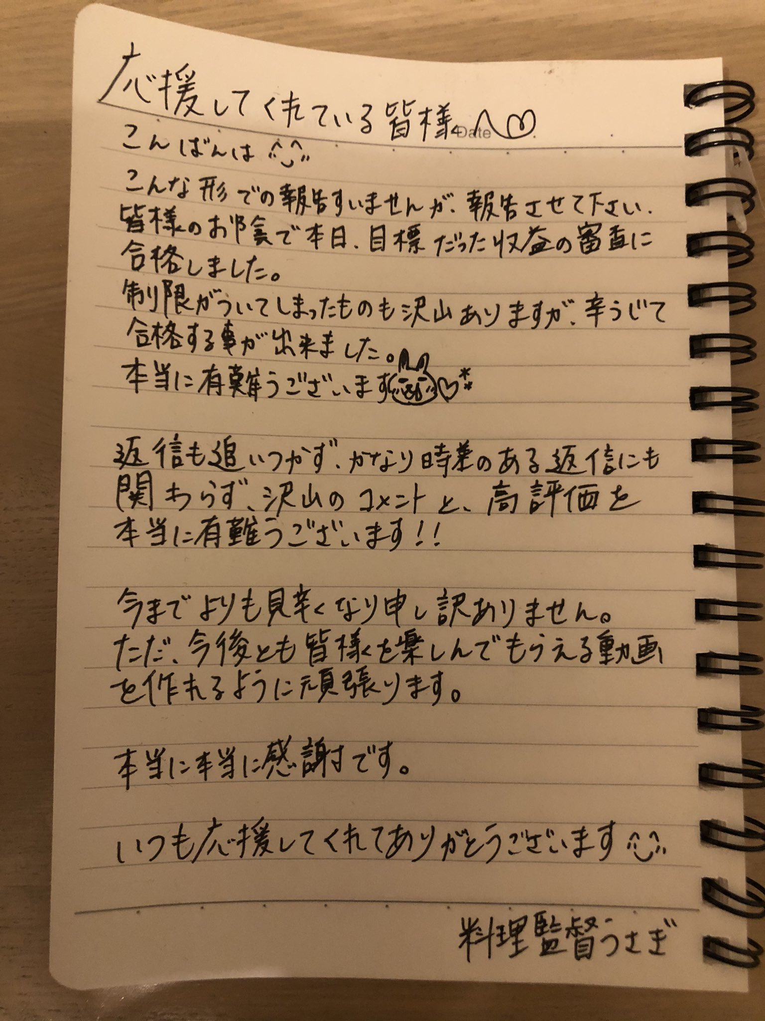 料理監督うさぎ On Twitter ご報告 汚い字ですいません 皆様の