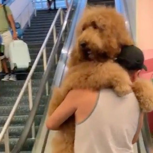 エスカレーターが怖いので 飼い主に当然のごとく抱っこしてもらう