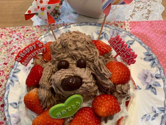 トイプードルのバースデーケーキ 姫路城から徒歩10分 五軒邸きゆう書道教室 日本習字 姫路市五軒邸支部
