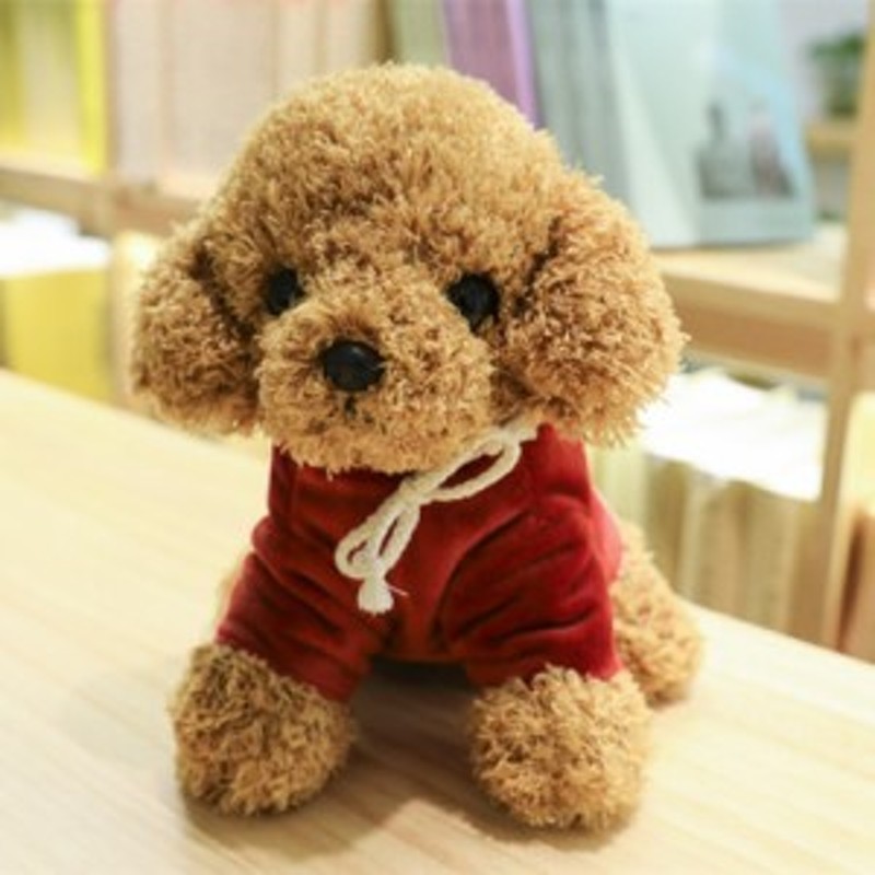 ぬいぐるみ パーカーを着たトイプードル ふわふわ ワインレッドの服