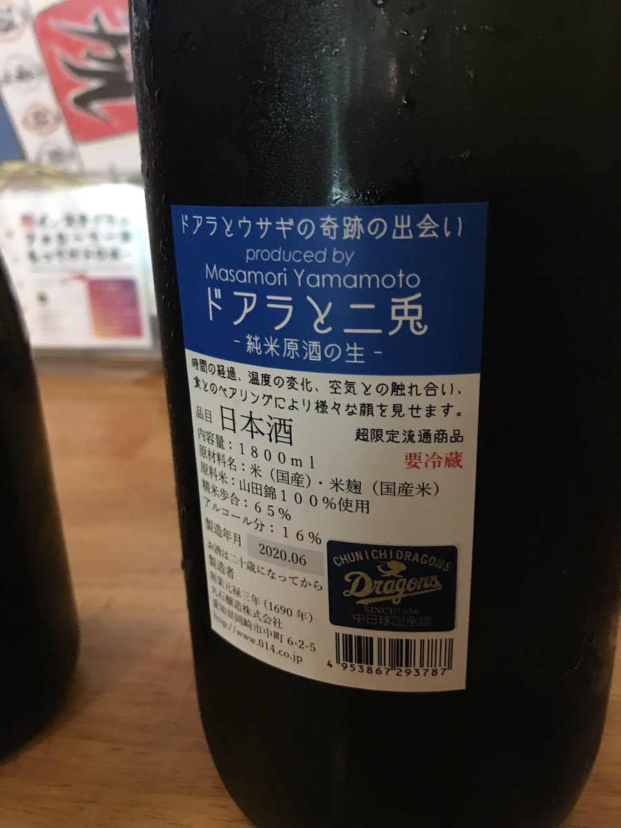 中日のコラボ日本酒 ドアラと二兎 が完成 山田錦の精米65 でやや