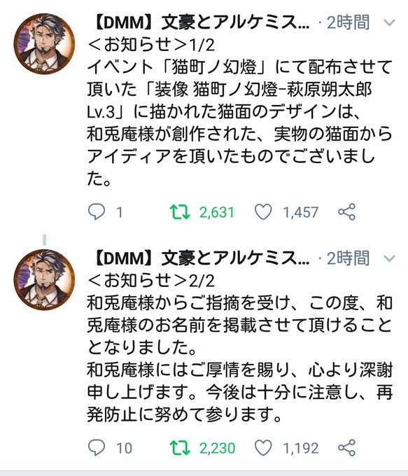 On Twitter 文アル猫町召装に和兎庵様のお名前が原案者