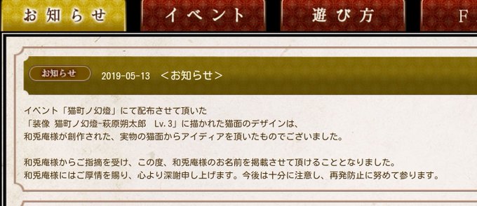 文豪とアルケミスト 限定召装 猫町ノ幻燈 におけるデザイン盗用疑惑