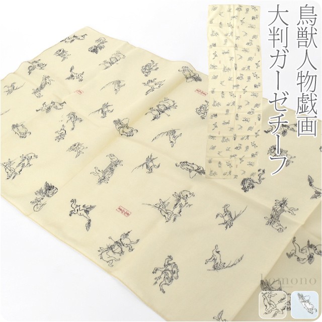 洗える マスク 手作り 生地 着物 ストール 彩 鳥獣人物戯画 ガーゼ