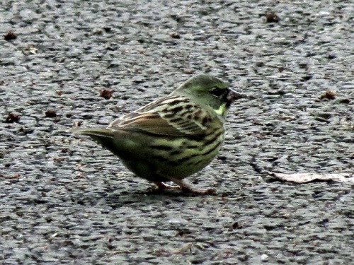 昭和記念公園で出合った緑色の鳥 アオジのようです 上面は褐色の羽毛