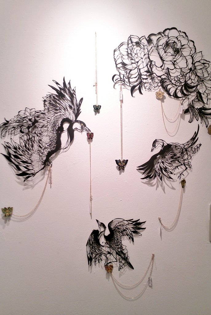 Takita 切り絵作家 Ar Twitter 切り絵ネックレス少し配置変えてみました イメージ的には鳥がネックレスをくわえて飛んでく感じです 紙とナイフ 展1月27日 29日 原宿