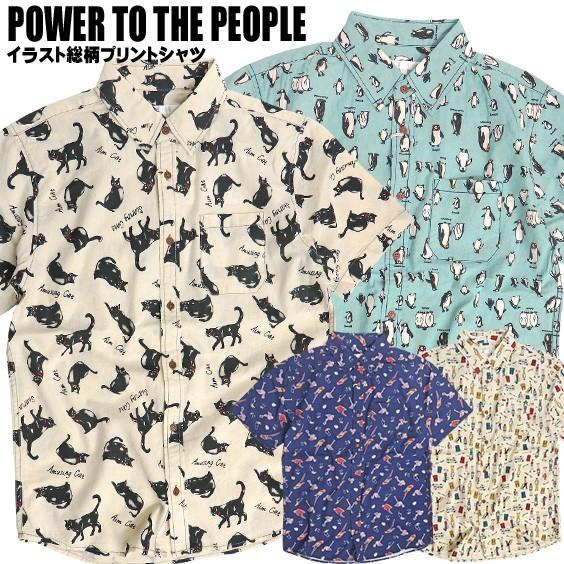 Power To The People シャツ 総柄プリント 半袖シャツ メンズ 猫 鳥 ペンギン 人柄 イラスト プリント Sy 018 Sy 018