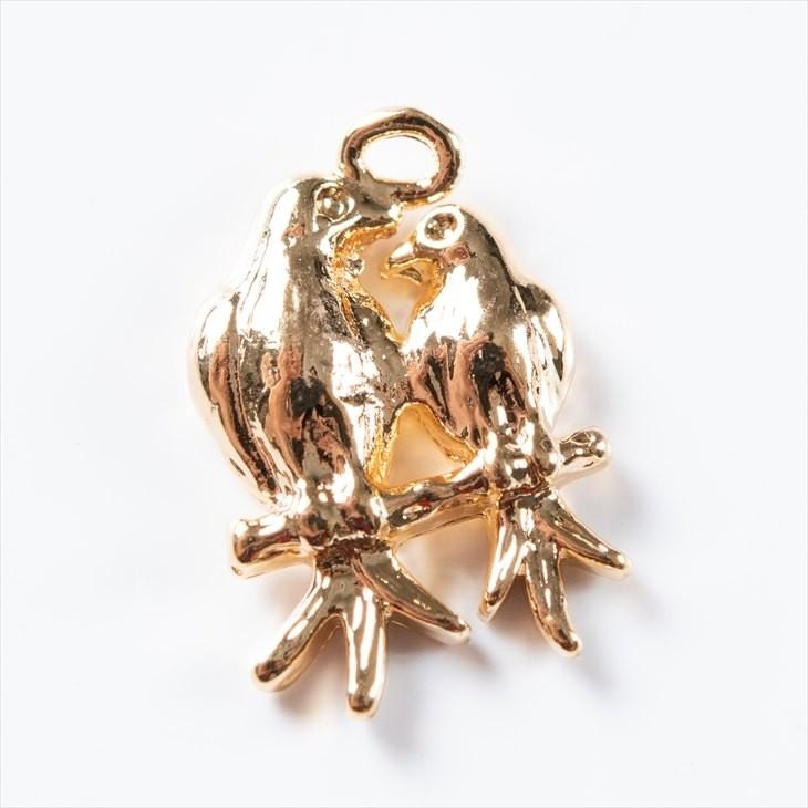 チャーム 2匹の鳥 ニッケルフリー ゴールド 15mm 1個 1ヶ 真鍮 真